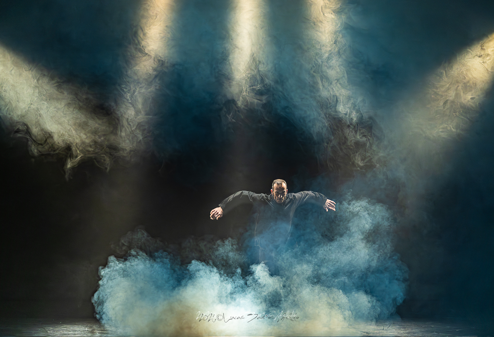 La obra se articuló en varias partes claramente diferenciadas. La primera sección, desarrollada sobre escenario, fue la que mejor conectó con el público, destacando por su claridad formal y por la intensidad del trabajo corporal, donde el movimiento dialogó de manera directa con el espacio escénico y la música.