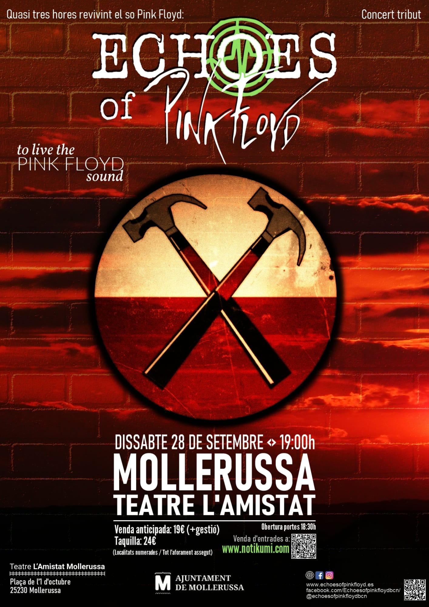 En 2026, Echoes of Pink Floyd celebra 10 años recreando con gran fidelidad el espíritu y el sonido de Pink Floyd. La banda ofrece un potente espectáculo musical y visual con luces, proyecciones y efectos sonoros, interpretando temas míticos como Echoes, Shine On You Crazy Diamond o Wish You Were Here. El proyecto quiere acercar la experiencia de Pink Floyd —una de las bandas más influyentes de la historia del rock— tanto a los fans de siempre como a quienes nunca pudieron ver al grupo original en directo.