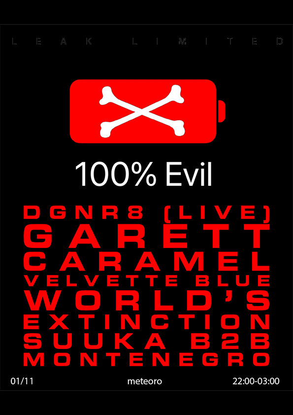 Leak Limited presents 100% Music: dgnr8, Garett Caramel, velvette blue, World's Extinction, suuka & Montenegro