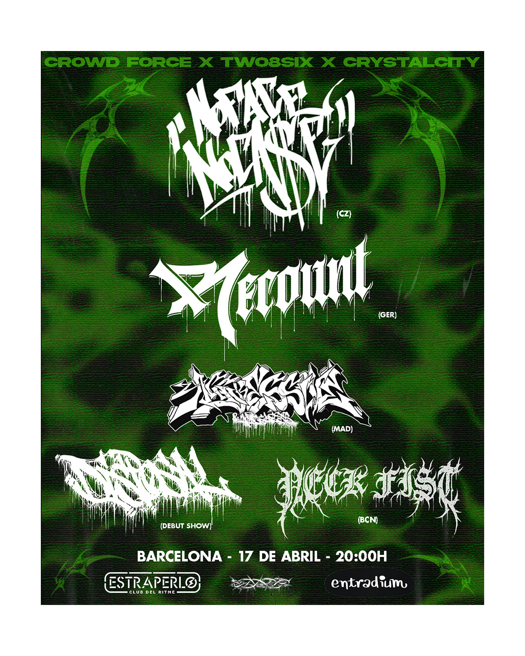 NOFACENOCASE + RECOUNT + AGGRESSIVE&VOICELESS + DISPOSAL + NECKFIST BARCELONA