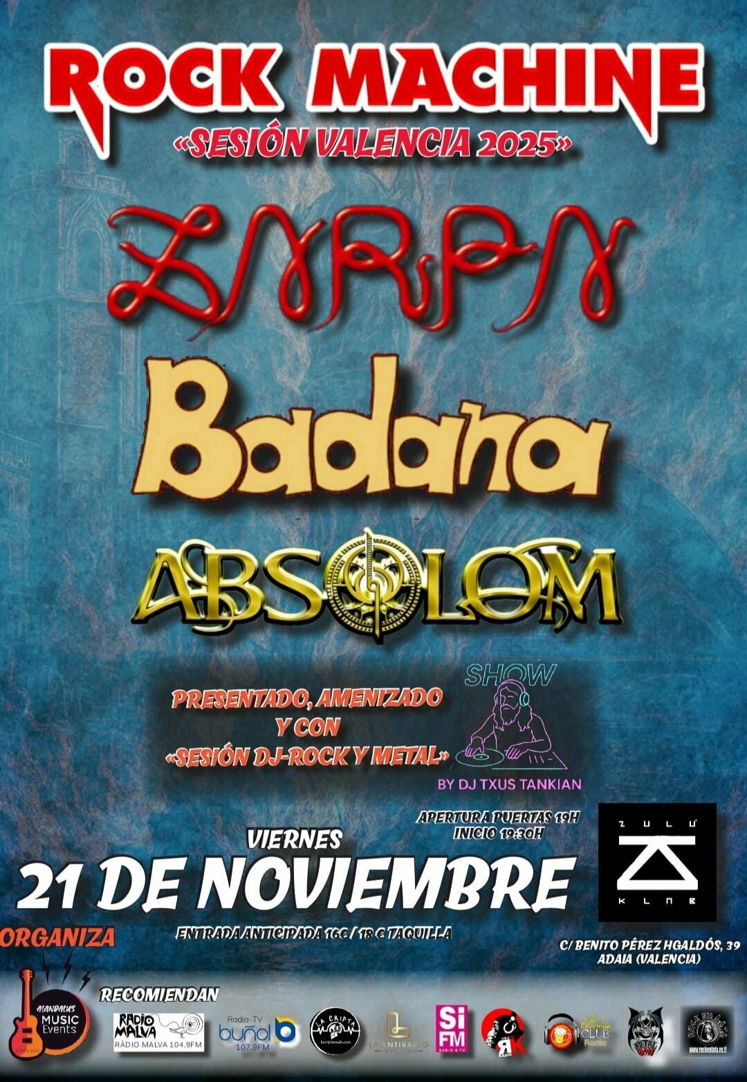 «Rock Machine 2025»: Zarpa + Badana + Absolom + DJ Txus Tankian