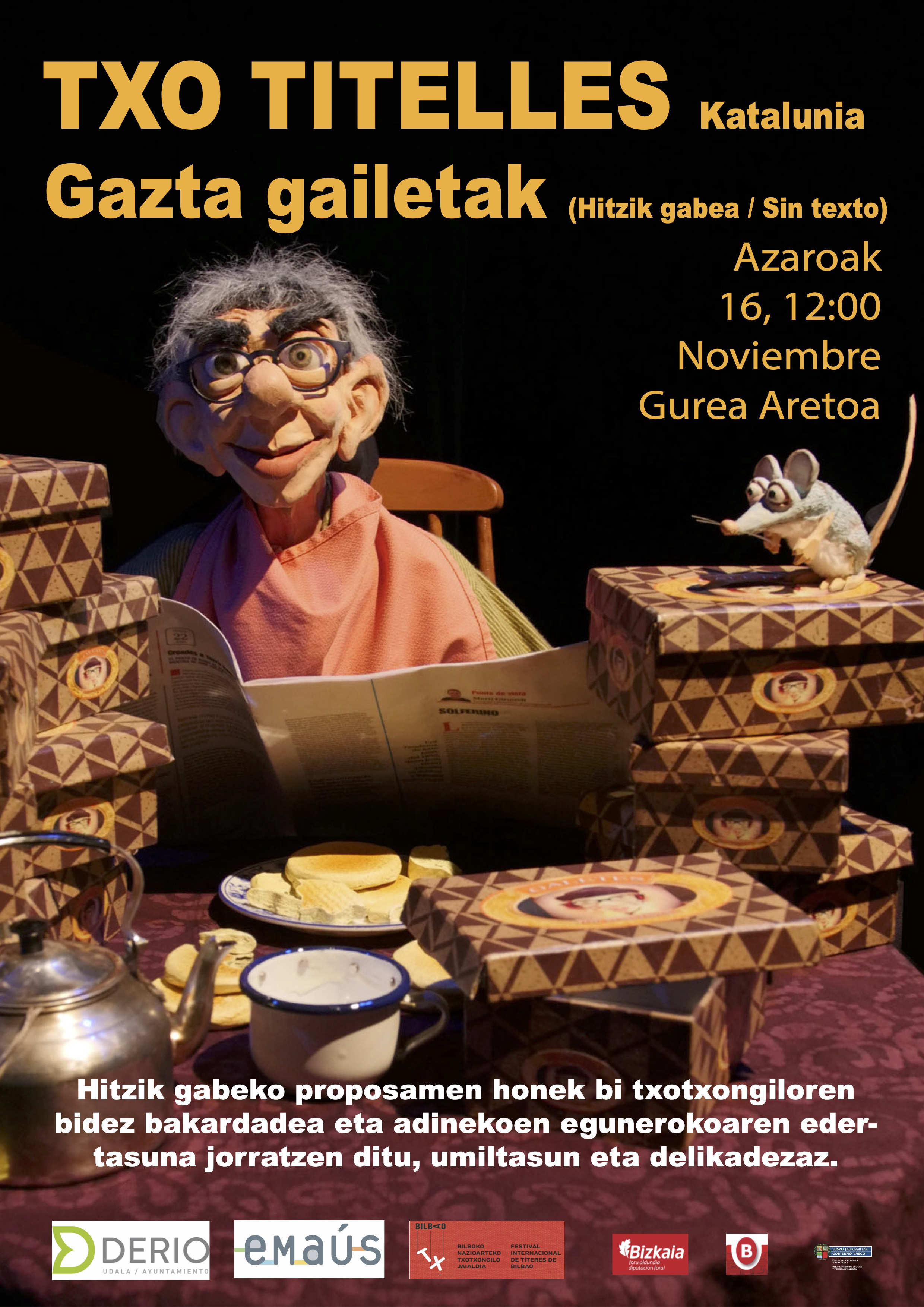 Todas las categorías + Cultura Arte Artes escénicas Artículos y entrevistas Cámara Cine Concierto Cultura Danza Deportes Familiar HUMOR Humor/Monólogos Juventud Loraldia MAGIA Magic Música Monólogos Música Musicales Ópera / Danza Ópera/Clásica Otros Otros parques Pensamiento y debate Pentsamendua eta gogoeta Planetarium Teatro teatro + música títeres
