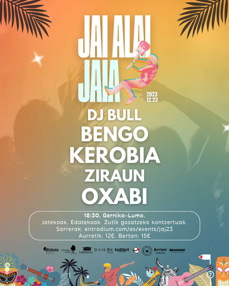 Gernikako Jai Alai pilotalekuak musika-gala handia hartuko Gabonen bezperan. Jai Alai Jaia 2023k musikari sorta bikaina bilduko du: Dj Bull, Bengo, Kerobia, Ziraun eta Oxabi. Festa handia egun berezietan.