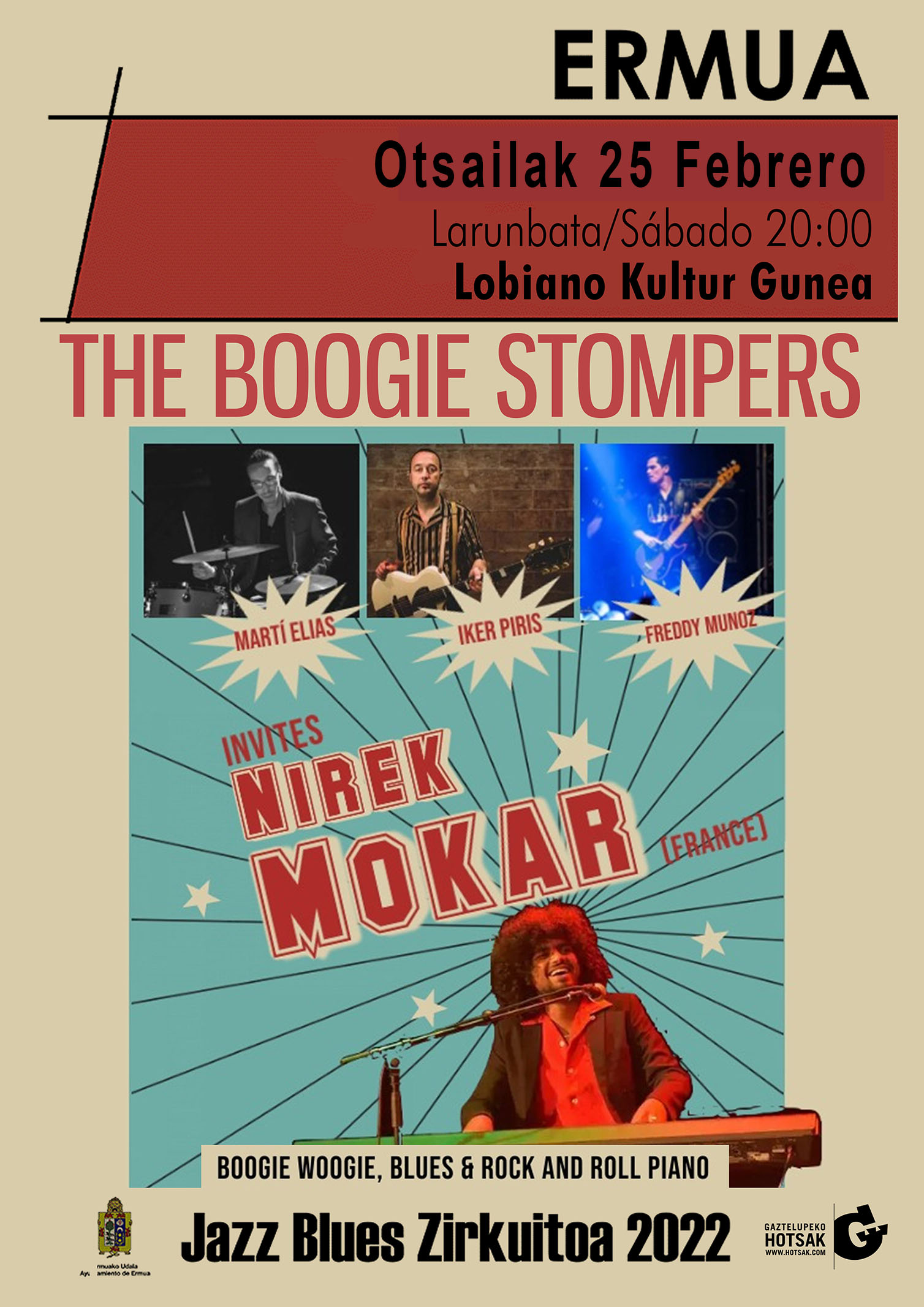 Taula gainean: Nirek Mokar pianoa, Iker Piris gitarra, Martí Elias bateria, Freddy Muñoz baxua