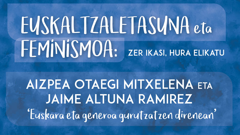 EUSKALTZALETASUNA ETA FEMINISMOA: ZER IKASI, HURA ELIKATU IKASTAROA Euskara eta generoa non gurutzatzen diren, ze ezaugarri partekatzen dituzten, batak bestetik zer ikas lezakeen eta bien arteko aliantzak ze esparru emankor zabaltzen digun mahai gainean jartzea da ikastaro honen helburua.