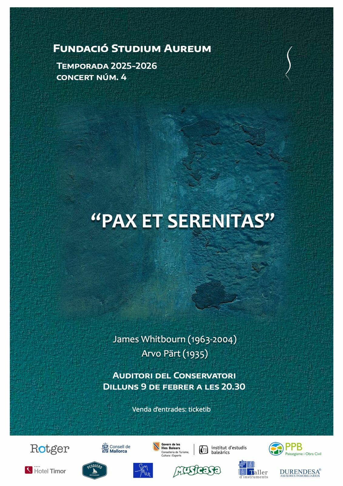 FUNDACIÓ STUDIUM AUREUM, CONCERT Nº4, PAX ET SERENITAS, WHITBOURN I PÄRT